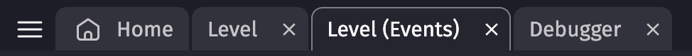 When a scene is opened, the events are shown in the "Events" tab. It is the tab that is usually located the right of the Scene tab.